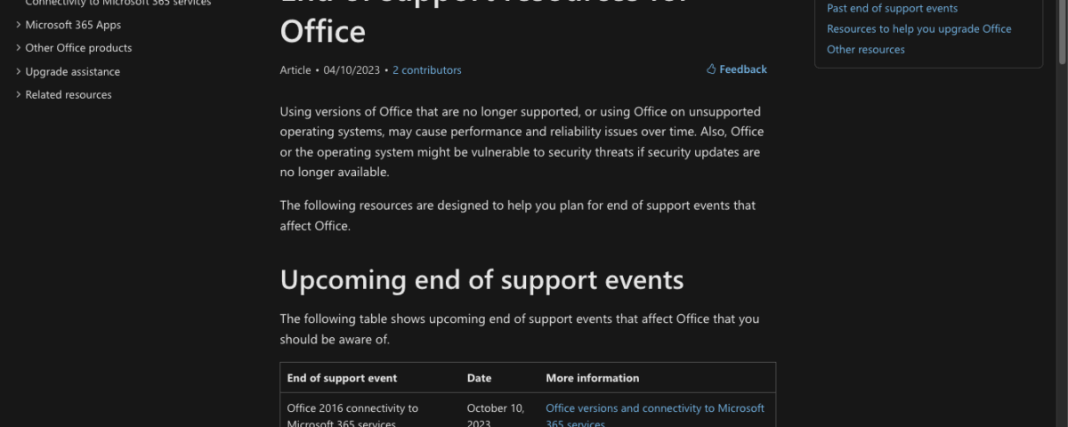 This website provides a list of key resources for Office 2013 and other versions that will also be reaching the end of support in 2023 and 2024.