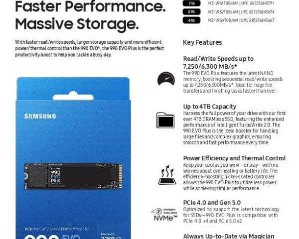 May 27, 2025You need tools that keep up with a busy workday. This datasheet introduces the Samsung 990 EVO Plus SSD — an internal drive that outpaces the 990 EVO with faster speeds, improved energy efficiency, and expanded capacity options up to 4TB. Download the datasheet to review the specs and see how the 990 EVO Plus supports smarter productivity. Contact Pullin Cloud Technologies to explore options for your devices.